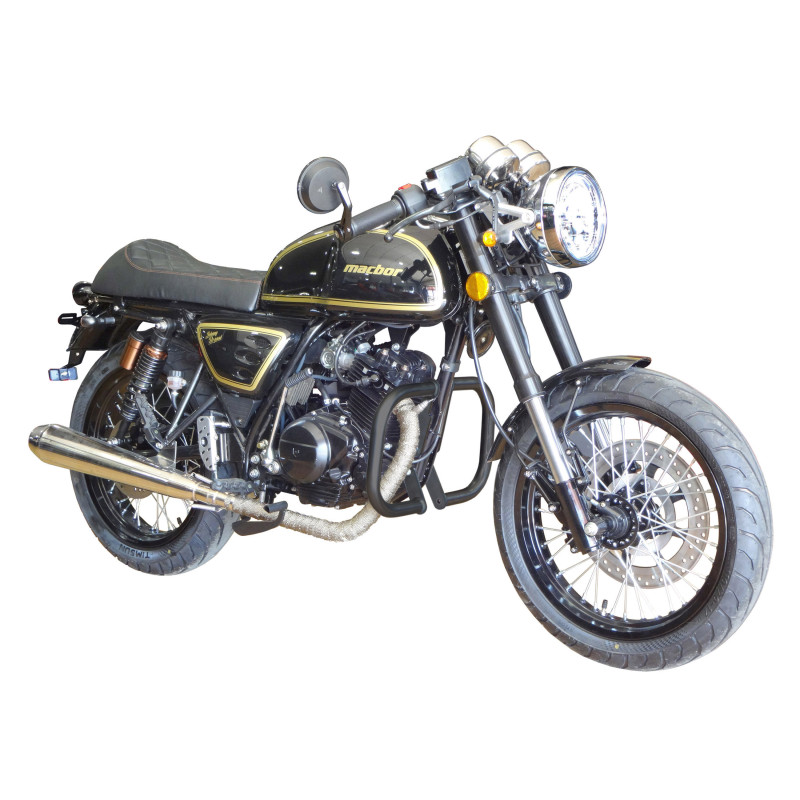 Protégez efficacement votre moto et votre sécurité avec cette paire de pare-carters en acier cintré, conçue pour absorber les chocs et limiter les dommages en cas de chute.