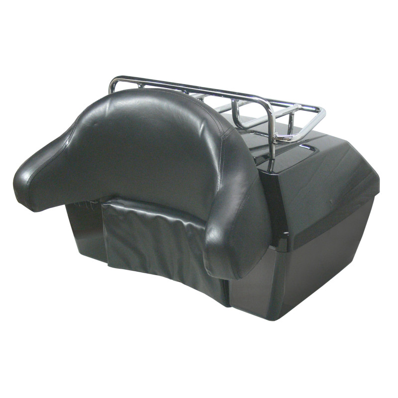 En plus de sa grande capacité pour transporter les bagages, son dossier intégré apporte confort au passager. Le coussin fixé à l'arrière du coffre est composé d'une mousse haute résilience et recouvert d'un revêtement en sky (immitation cuir) pour éviter les désagréments de l'humidité.
